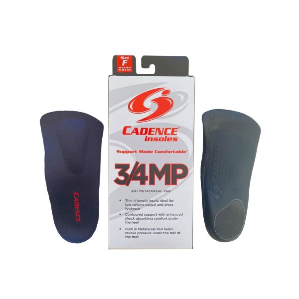 The Cadence ¾ MP is a thin 5mm and provides contoured semi-rigid support with enhanced comfort and relief under the heel and a built-in metatarsal pad for added relief and pressure distribution under the forefoot.