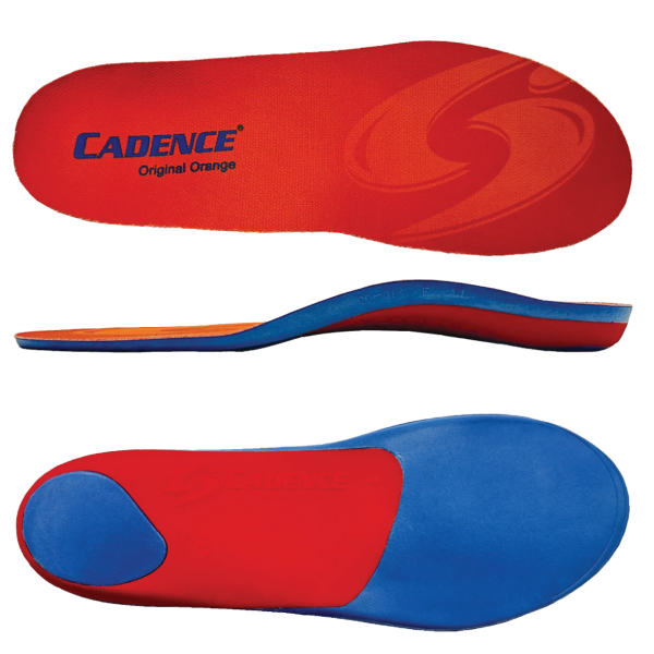 The Cadence Original Orange provides contoured semi-flexible support with exceptional shock absorbing comfort under the heel and forefoot. The support shell is more flexible compared to the EX and EX+MP and is intended for those with low to high arches and works best in moderate to high volume footwear.