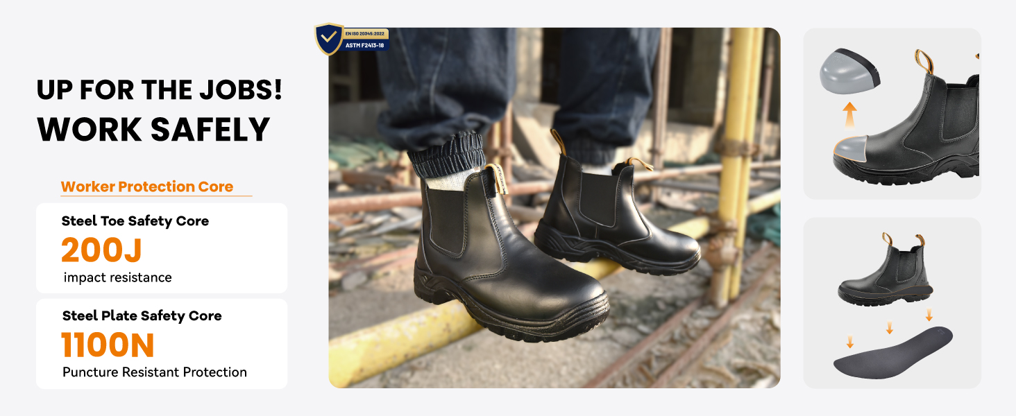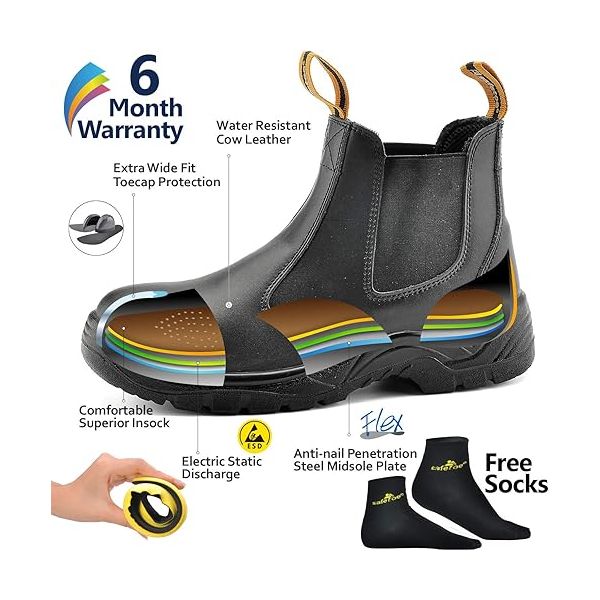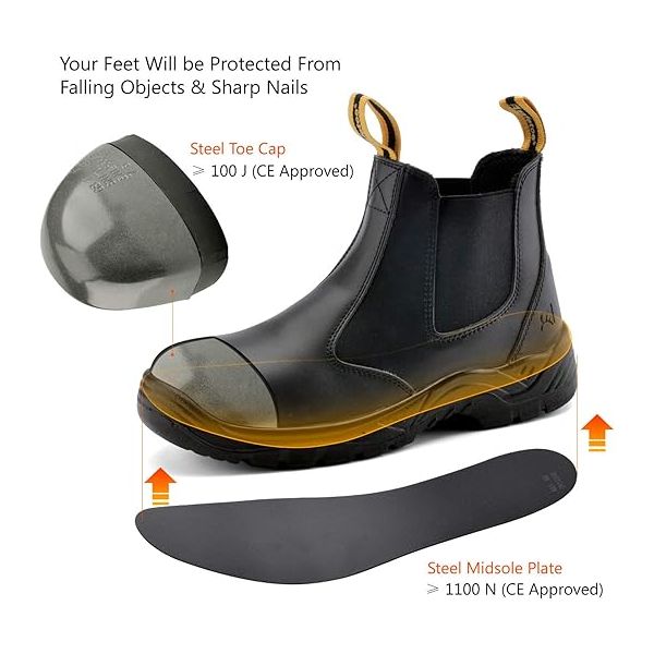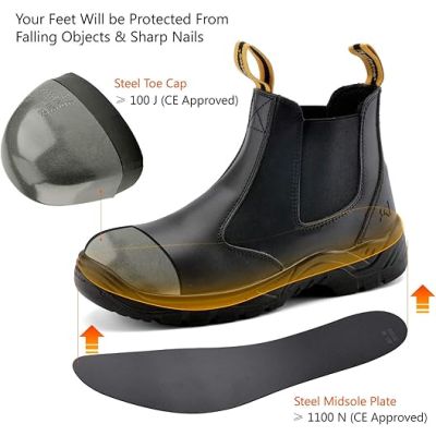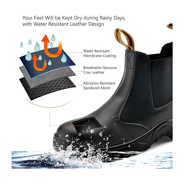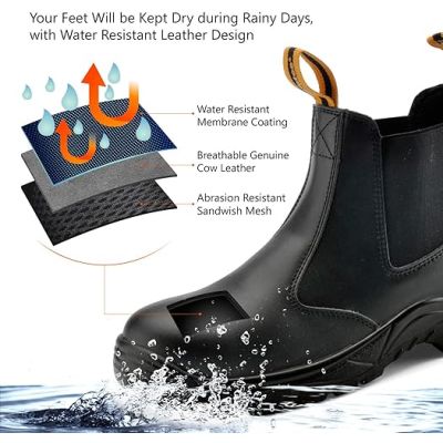 【SUPERIOR COMFORTABLE】: These chelsea work boots offer thickness and soft shock absorption foam memory insoles,breathable air hole mesh keep your feet dry and anti-fatigue on hot days, fiber structures provide nice and warm on cold days. Repeated Impact Protection, Comfort, Breathable, Thin and Lightweight, Endurance.