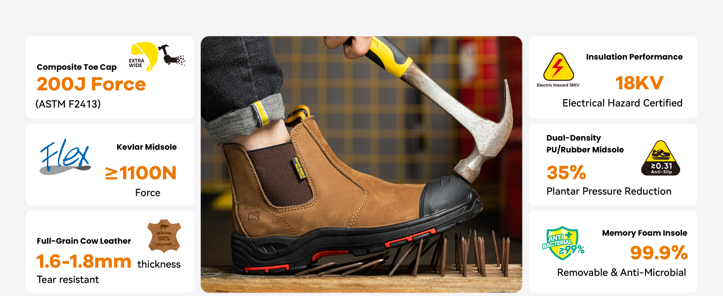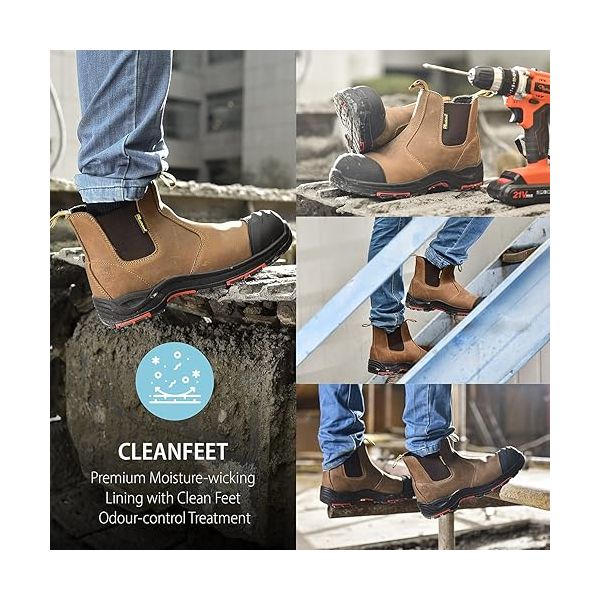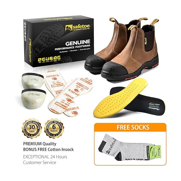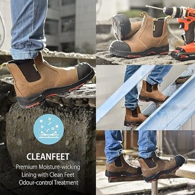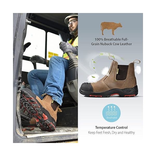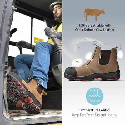 【SUPERIOR COMFORTABLE】: These chelsea work boots offer thickness and soft shock absorption foam memory insoles,breathable air hole mesh keep your feet dry and anti-fatigue on hot days, fiber structures provide nice and warm on cold days. Repeated Impact Protection, Comfort, Breathable, Thin and Lightweight, Endurance